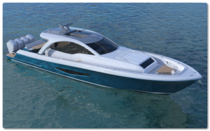 The builder’s 48 Convertible with Scania V8s will run on drop-in, renewable diesel at the New Jersey event.