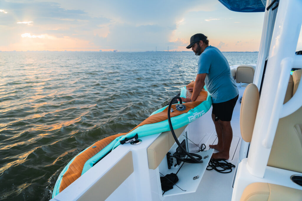 Scanstrut’s Atmos Air Station illustrates the company’s efforts to reimagine on-board conveniences. The permanently installed system replaces portable inflators for paddleboards, towables and other gear. “Whenever we see a genuine problem on board that no one has solved yet, the team becomes energized,” Bowles says. “Storing half-inflated pads, towables or paddleboards is messy and painful on board. Atmos eliminates that problem completely.”