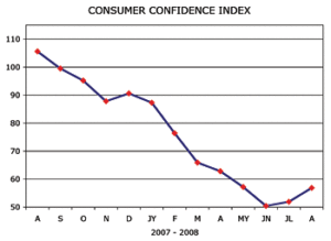 The global financial upheaval has driven consumer confidence to the lowest level ever recorded by the Conference Board. After showing modest improvement in September, the