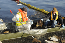 Coast Guard personnel remained at McCotters Marina in Washington, N.C., through the weekend to supervise the cleanup of petroleum products that leaked into Broad Creek